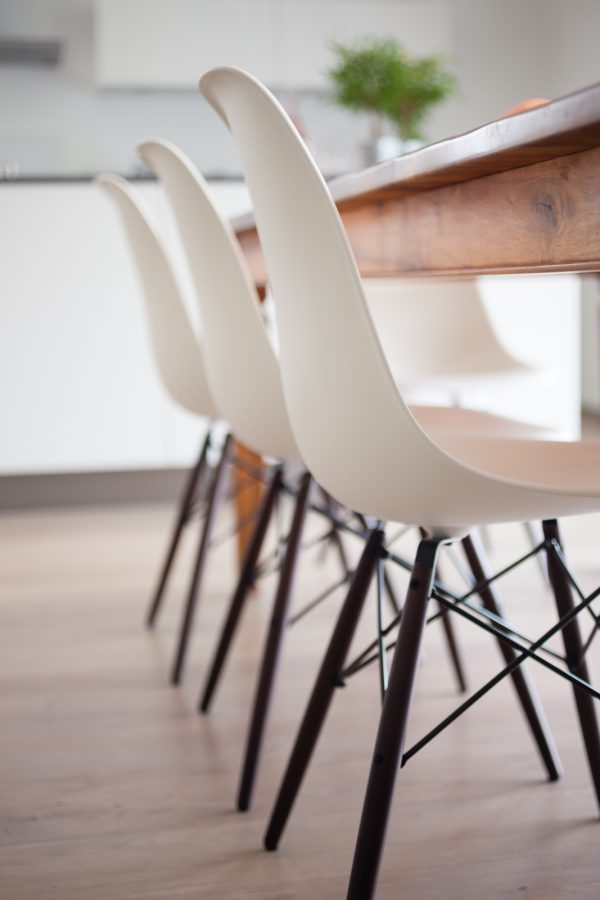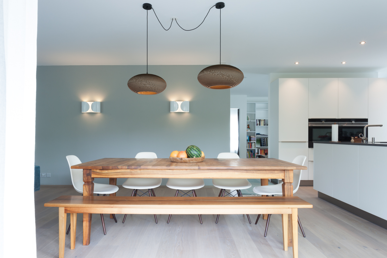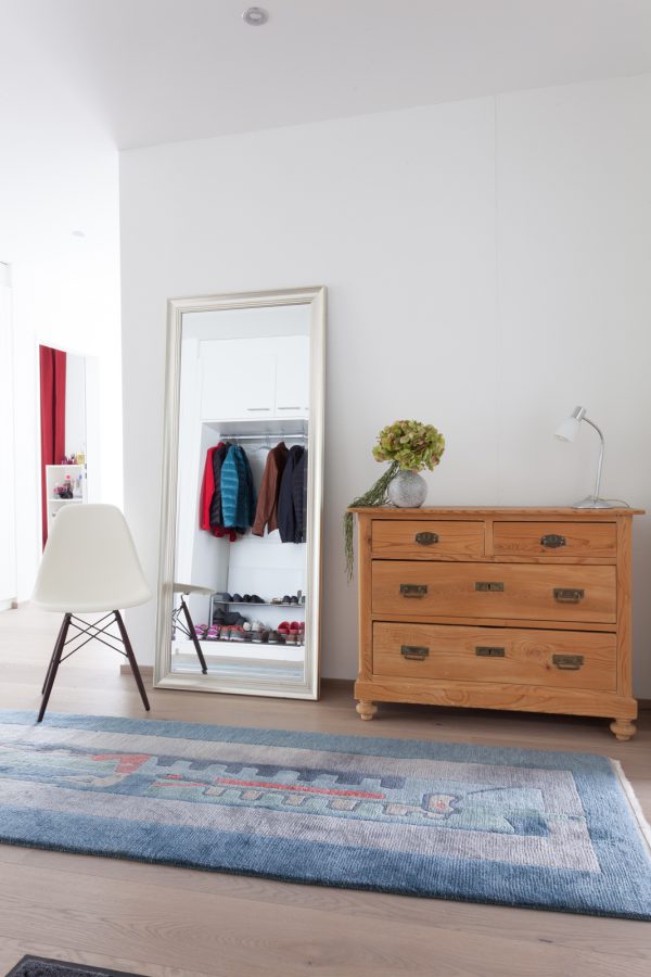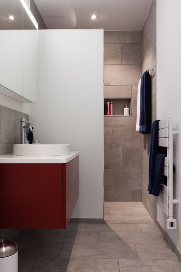 Diese schöne, großzügige und moderne Wohnung wurde gründlich überdacht. Die Bauherren wollten sich dafür einsetzen eine qualitative hochwertige Wohnung zu schaffen und die Materialen, sowie die Verteilung der Räume gut zu überlegen. Die Kunden wünschten sich bei diesem Projekt eine langfristige und globale Begleitung, die schon bei der Planung von Bädern, Böden und eingebauten Möbeln anfing. Dieses Ehepaar und dessen zwei jugendlichen Kindern waren neugierig und voller Erwartung bezüglich neuer Ideen und Quellen. Die Zusammenarbeit wurde stets von Enthusiasmus und Lust an neuen Impulsen begleitet. Ausgesucht wurden ein paar Klassik Design Objekte, die modern, zeitlos sowie auch praktisch sind; die Eames Stühle von Vitra, die Stehlampe Tolomeo von Artemide, das puristische Sideboard von Morgen. Um ein Gefühl von Gemütlichkeit und angenehme Atmosphäre zu kreieren, fügten wir noch ein paar Elemente aus natürlichen Materialen wie das Leinenbett von Gervasoni, die unglaublichen Deckenleuchten aus recyceltem Karton von Graypants und einen Bambusfaser Teppich von Vanghent! Das Ergebnis ist ein völlig neuer Stil für diese Familie; es bildet eine sehr schöne und zugleich praktische und geschlossene Einheit!