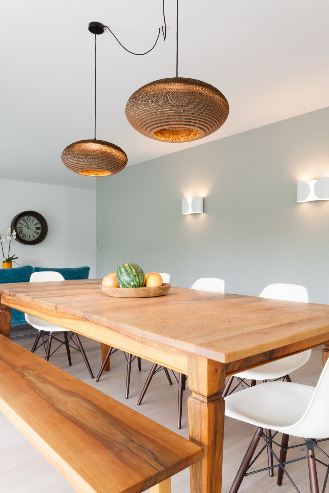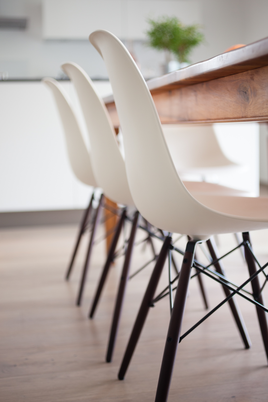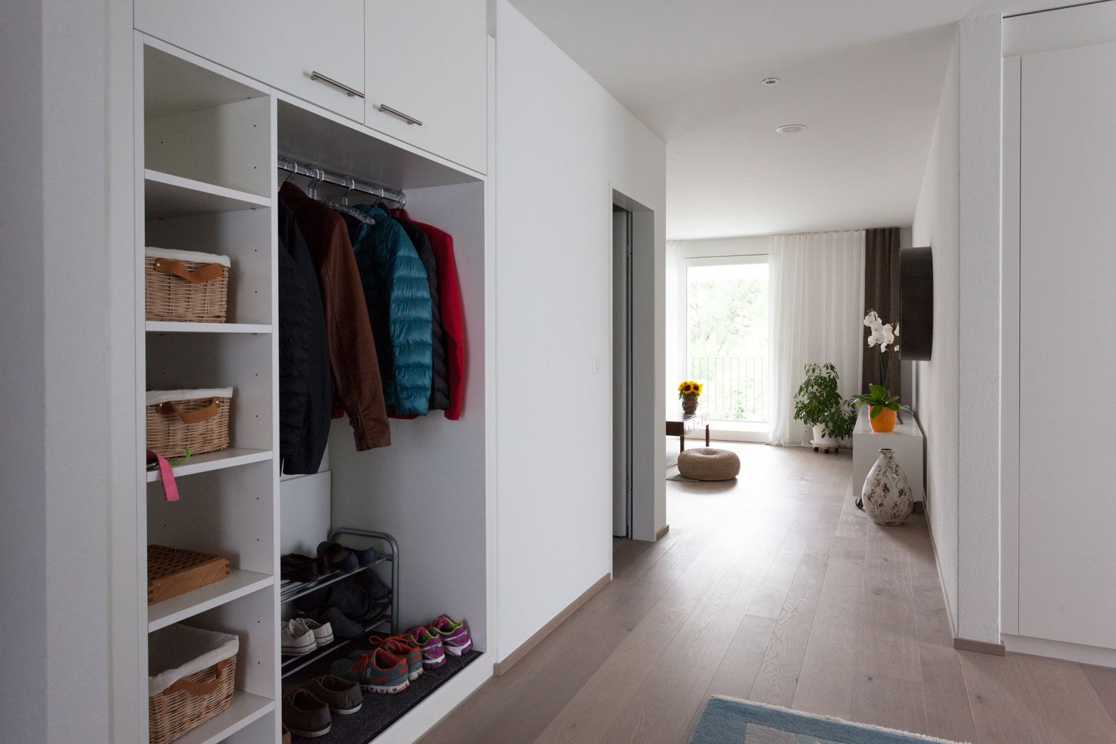 Diese schöne, großzügige und moderne Wohnung wurde gründlich überdacht. Die Bauherren wollten sich dafür einsetzen eine qualitative hochwertige Wohnung zu schaffen und die Materialen, sowie die Verteilung der Räume gut zu überlegen. Die Kunden wünschten sich bei diesem Projekt eine langfristige und globale Begleitung, die schon bei der Planung von Bädern, Böden und eingebauten Möbeln anfing. Dieses Ehepaar und dessen zwei jugendlichen Kindern waren neugierig und voller Erwartung bezüglich neuer Ideen und Quellen. Die Zusammenarbeit wurde stets von Enthusiasmus und Lust an neuen Impulsen begleitet. Ausgesucht wurden ein paar Klassik Design Objekte, die modern, zeitlos sowie auch praktisch sind; die Eames Stühle von Vitra, die Stehlampe Tolomeo von Artemide, das puristische Sideboard von Morgen. Um ein Gefühl von Gemütlichkeit und angenehme Atmosphäre zu kreieren, fügten wir noch ein paar Elemente aus natürlichen Materialen wie das Leinenbett von Gervasoni, die unglaublichen Deckenleuchten aus recyceltem Karton von Graypants und einen Bambusfaser Teppich von Vanghent! Das Ergebnis ist ein völlig neuer Stil für diese Familie; es bildet eine sehr schöne und zugleich praktische und geschlossene Einheit!