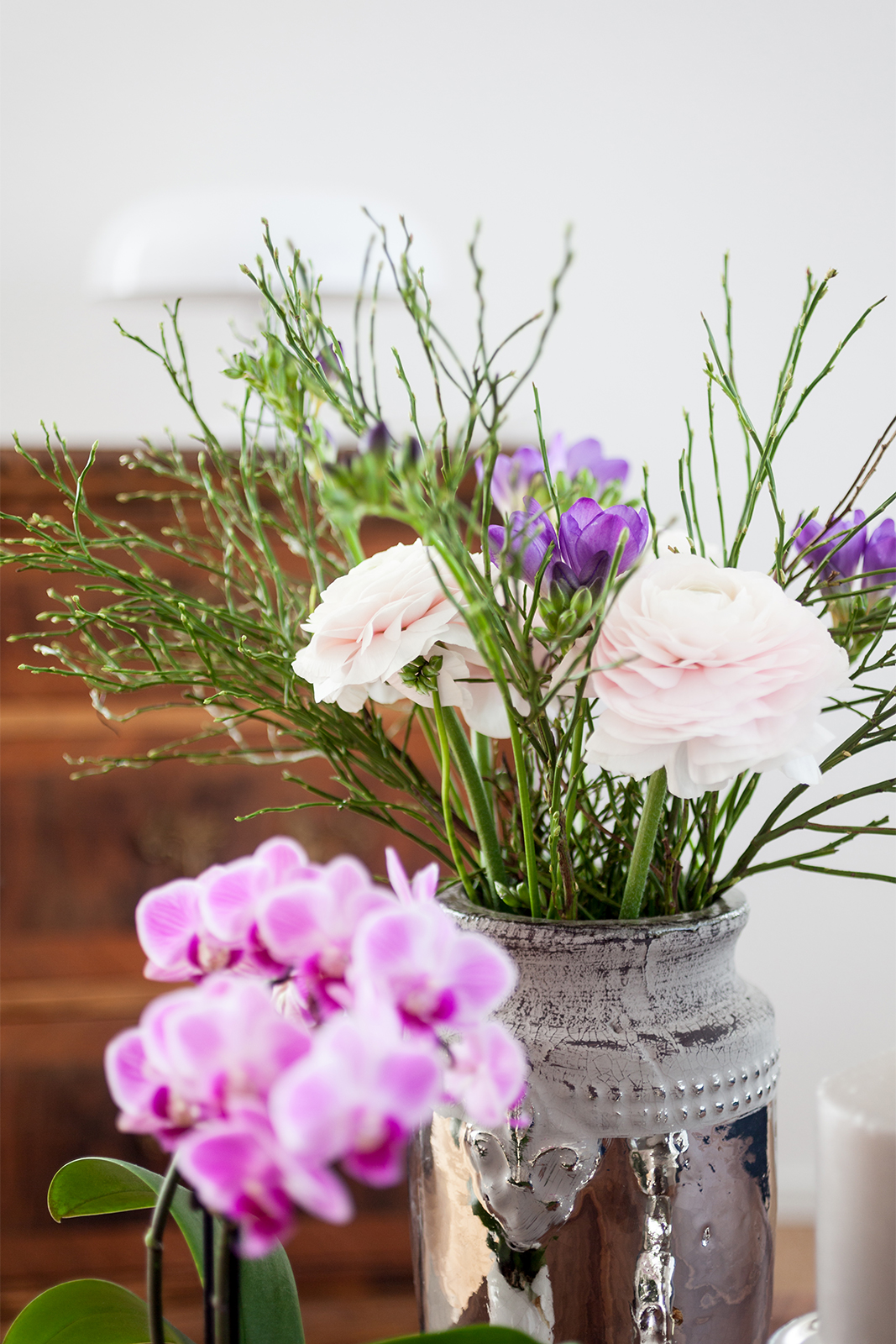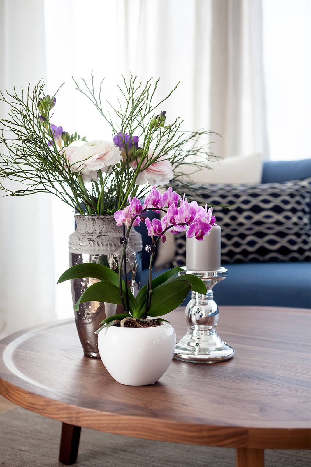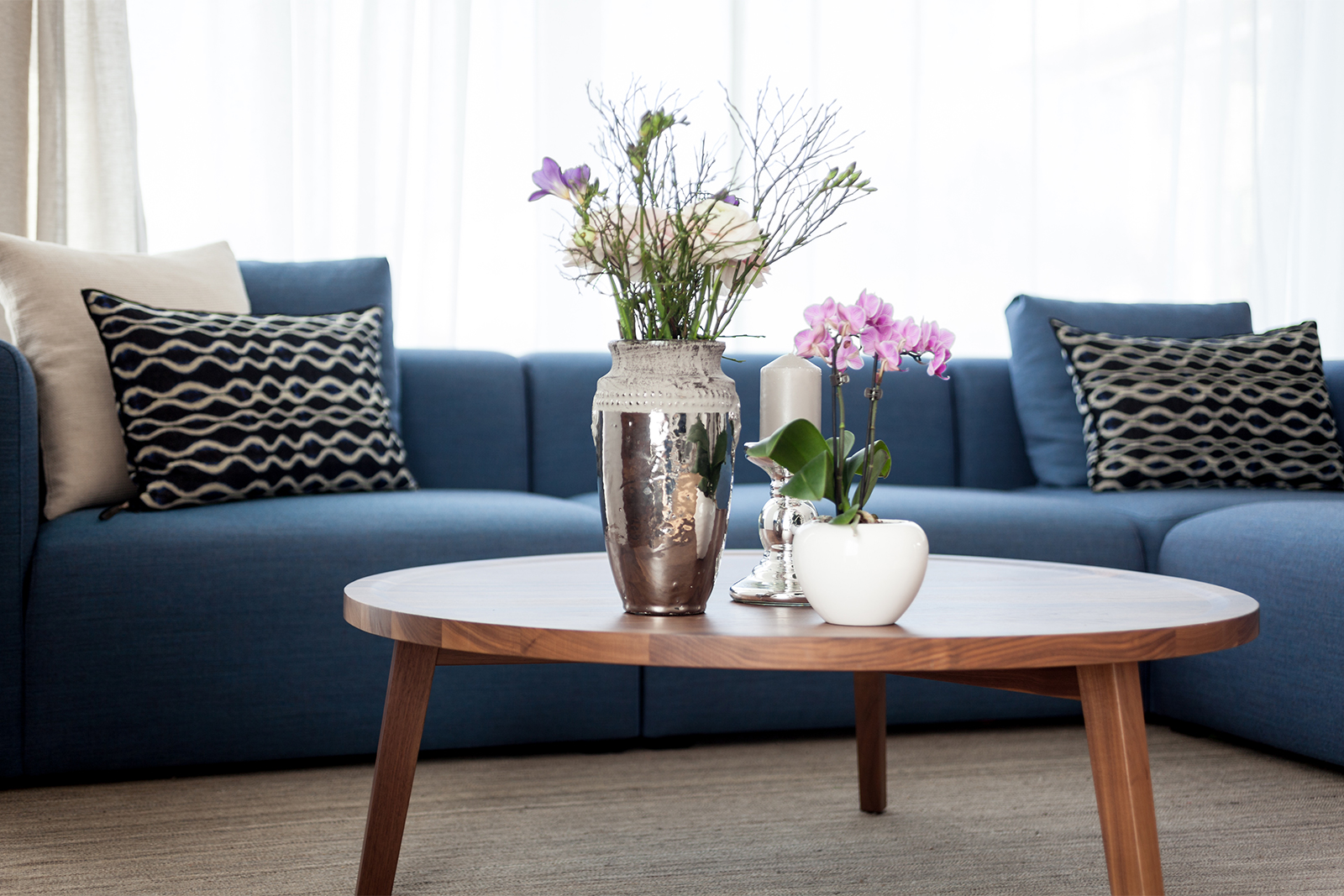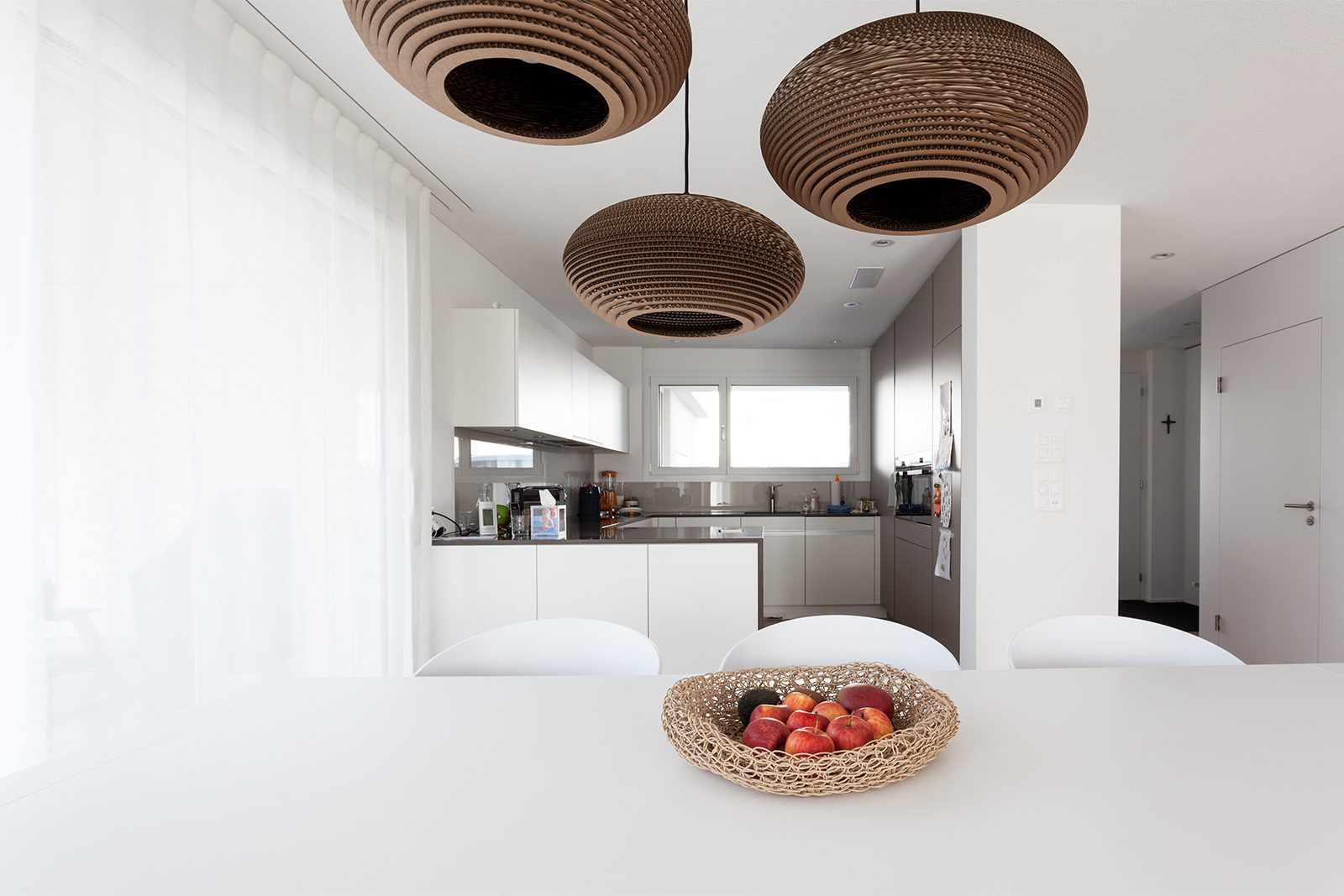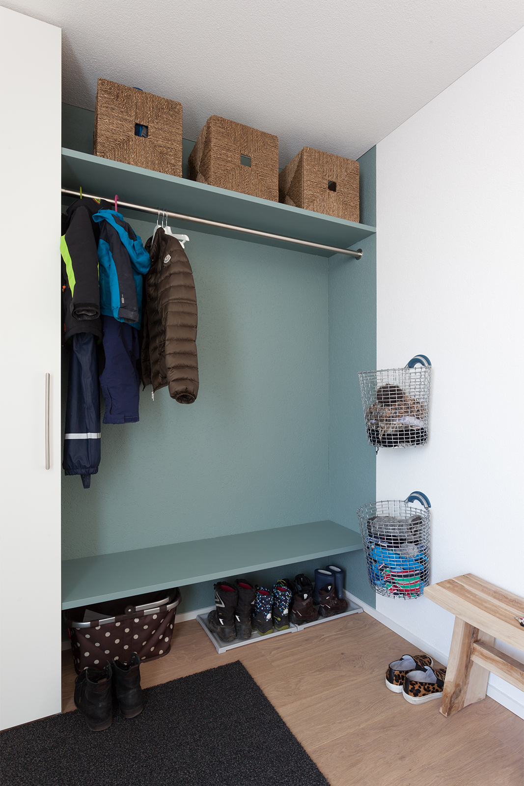 Diese junge Familie, die Käufer eines neuen modernen Hauses brauchten Unterstützung bei der kompletten Einrichtung ihres neuen Zuhauses. Wir definierten ein genaues Konzept und planten die Farben, den Stil und das Budget für alle drei Etagen des Hauses. Einige vorhandene Möbel wie z.B. Betten, Schränke, eine Kommode, und ein Sideboard wurden behalten, neue fröhliche und frische Möbel haben wir hinzugefügt. Wir definierten auch die Wand- und Bodenfarben und die Einrichtung der Bäder. Alles sollte schlicht aussehen und eine gewisse Leichtigkeit haben. Auch die neue Möbel, Leuchten und Accessoires wurden entsprechend dieser Philosophie ausgesucht: luftige, schlichte und schöne Materialien, vom Preis her im mittleren Segment. Wir suchten ein Bluejeans Sofa und Stühle von Hay aus, Lampen von Graypants und mehrere Accessoires von Muubs. Ein Hauch von Luxus durfte trotzdem nicht fehlen, so ergänzten wir mit Vorhänge und Textilien von Society und Maison de Vacances und Leuchten von Foscarini und Paris au mois d’août. Entstanden ist ein freundliches, einladendes Haus, welches genug Raum hat für die noch wachsende Familie.