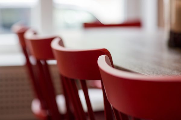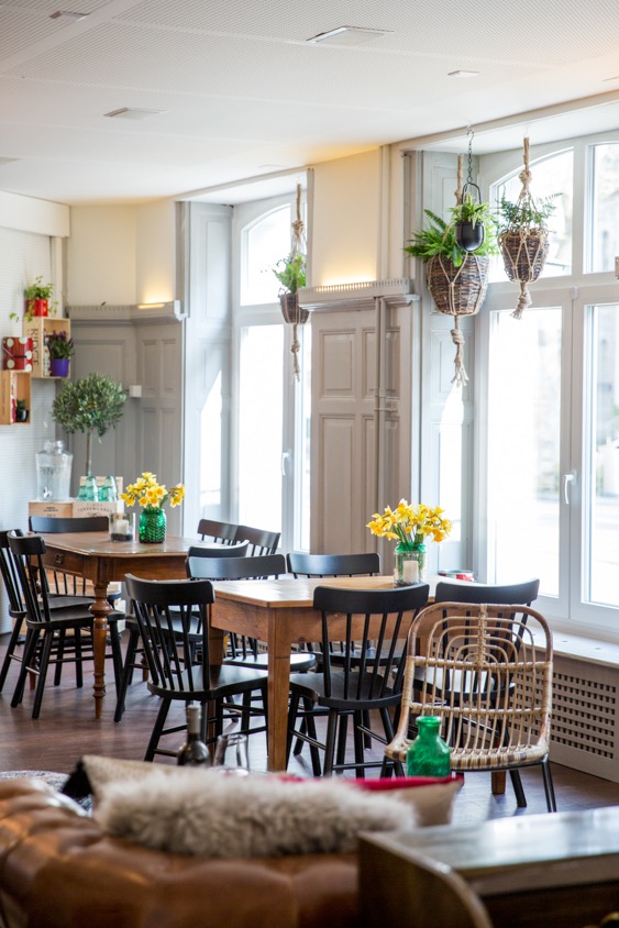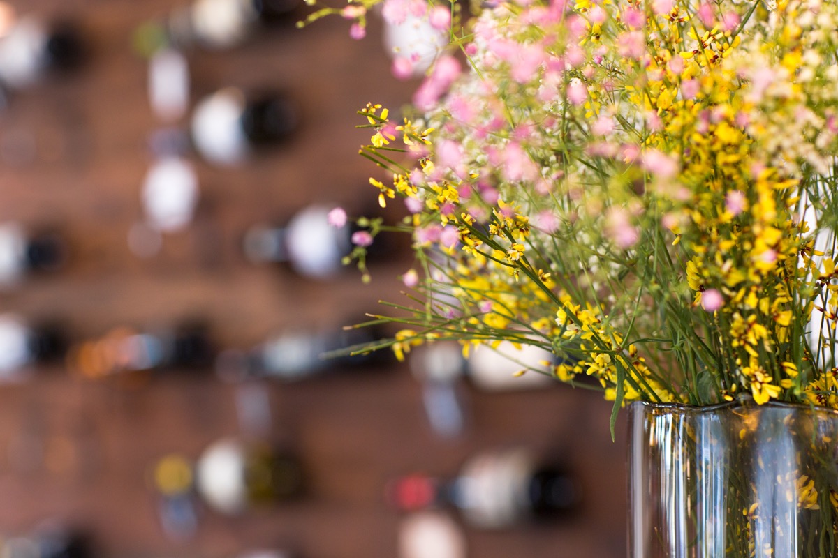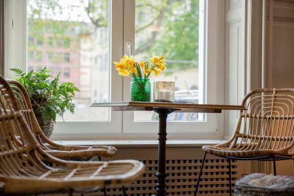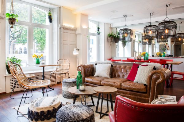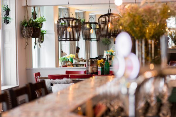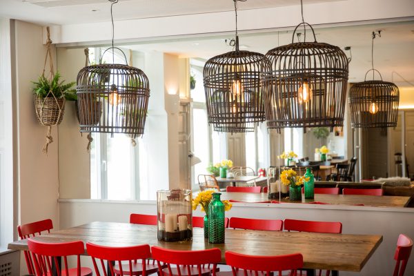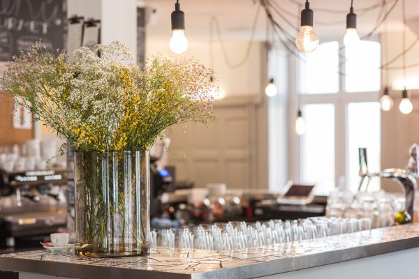 Das Lokal wirkte trist und etwas vernachlässigt. Die Besitzer, ein junges dynamisches Paar, wollten daraus eine freche, gemütliche Weinbar machen. Mit verschiedenen Sofas, Hockern und mehreren Tischen kreierten wir ein Zuhausegefühl. Die Accessoires sollten ebenfalls denen eines Wohnzimmers entsprechen. In der ersten Phase musste das Lokal jedoch erst einmal «aufgepeppt» werden. Maler, Schreiner, Sanitär und Elektriker leisteten grossartige Arbeit und gaben dem Lokal seinen ursprünglichen Glanz zurück! Bei den Möbeln entschieden wir uns für die folgenden Materialien: Leder, Metall, viel Holz mit einem roten Farbakzent. Die Lampen aus schwarzem Rattan über den Tischen und die coole Lampe von Seletti über der Bar bilden einen Hingucker und wirken gleichzeitig sehr dekorativ. Die Kissen aus verschiedenen Materialen, hängende, unterschiedliche Pflanzenkörbe, Vasen und viele Glasbehälter mit Kerzen runden das wohnliche Raumgefühl ab. Nun können die Gäste die hervorragenden Weine in gemütlicher Atmosphäre geniessen!
